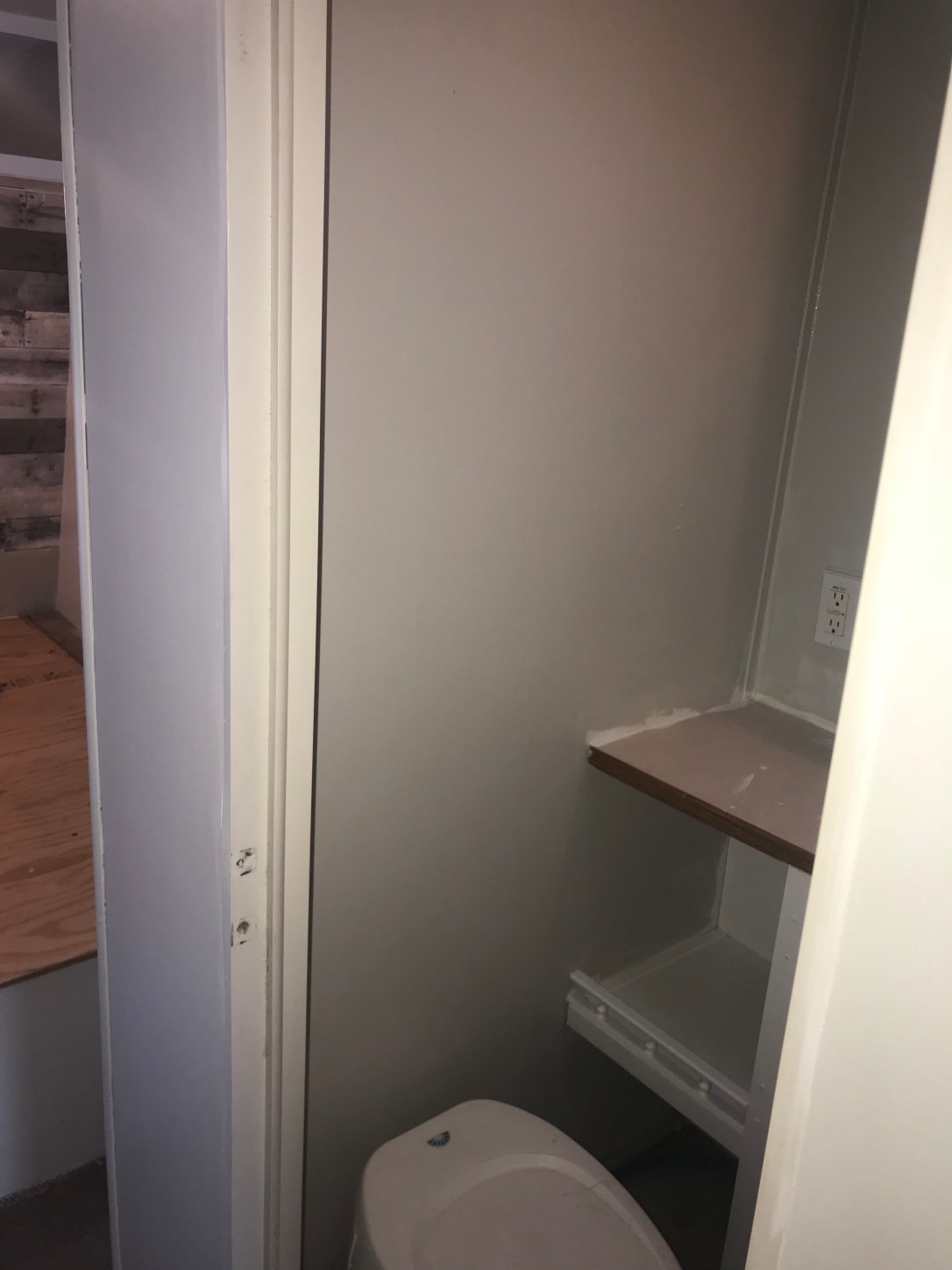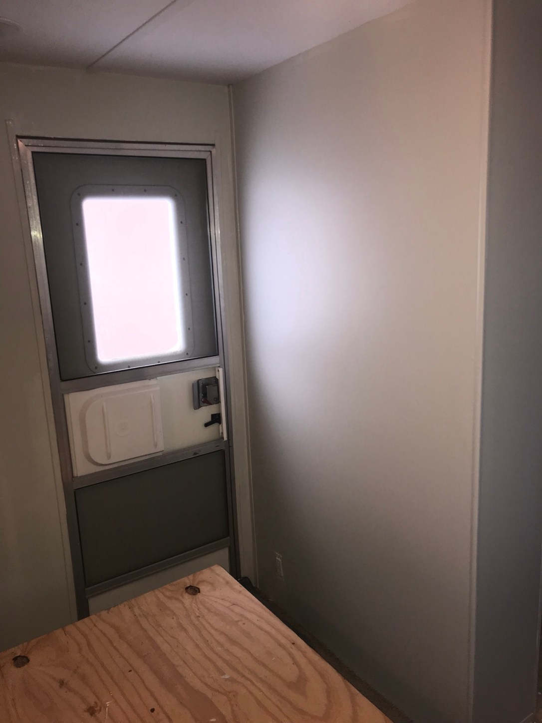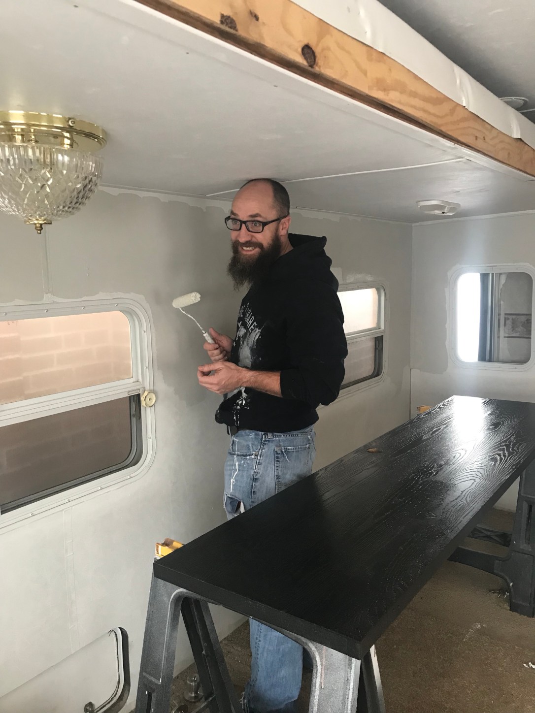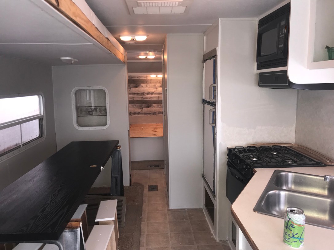– finished painting and threw on a coat of poly on the cabinets and basically everything that was the color of wood. Which, in an early 2000’s camper, is basically anything that’s NOT ugly wallpaper.