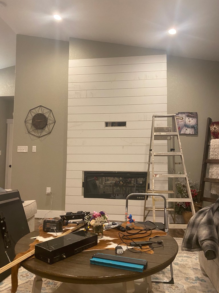 I’m on a huge shiplap kick. It’s cheap and SUPER easy to install if you’re a do-it-yourselfer. I had a bit of help from my awesome hubby and my ex (who happened to be living with us during Christmas break while he was home from his traveling work schedule).